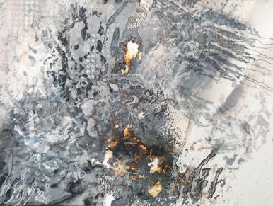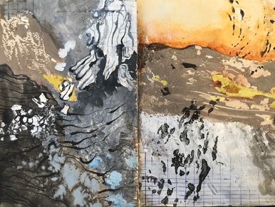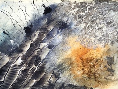 Mixed Media - including sea spray, sand, acrylic, ink and monotype imprints of ancient strata