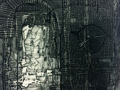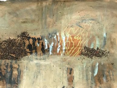 Mixed Media - including earth pigments, sand, acrylic, ink and monotype imprints of ancient strata