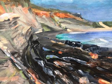 Mixed media including Mercia Mudstone pigment from the cliffs, acrylic and ink