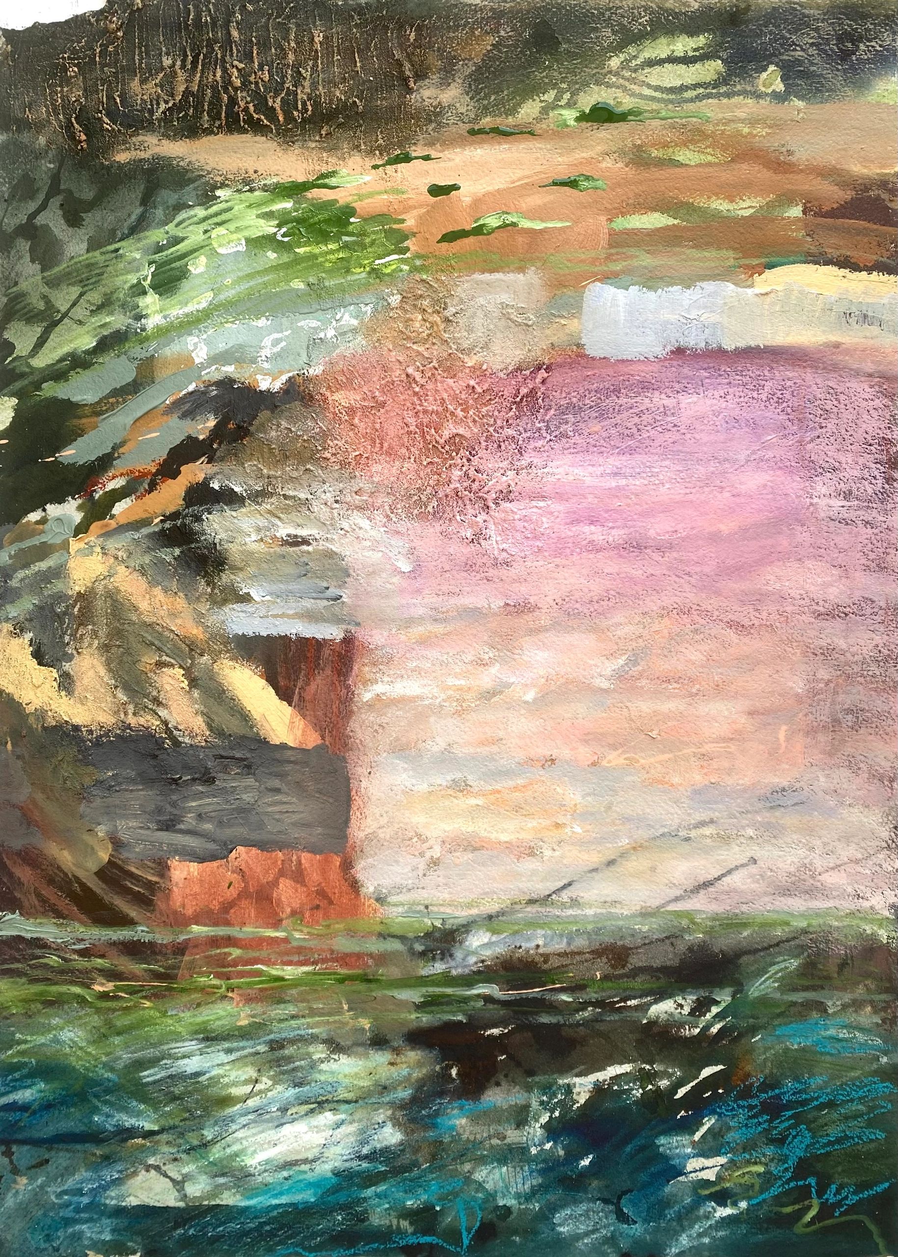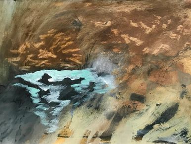 Mixed Media - including wild pigment, sea spray, sand, acrylic, ink and monotype imprints of ancient strata